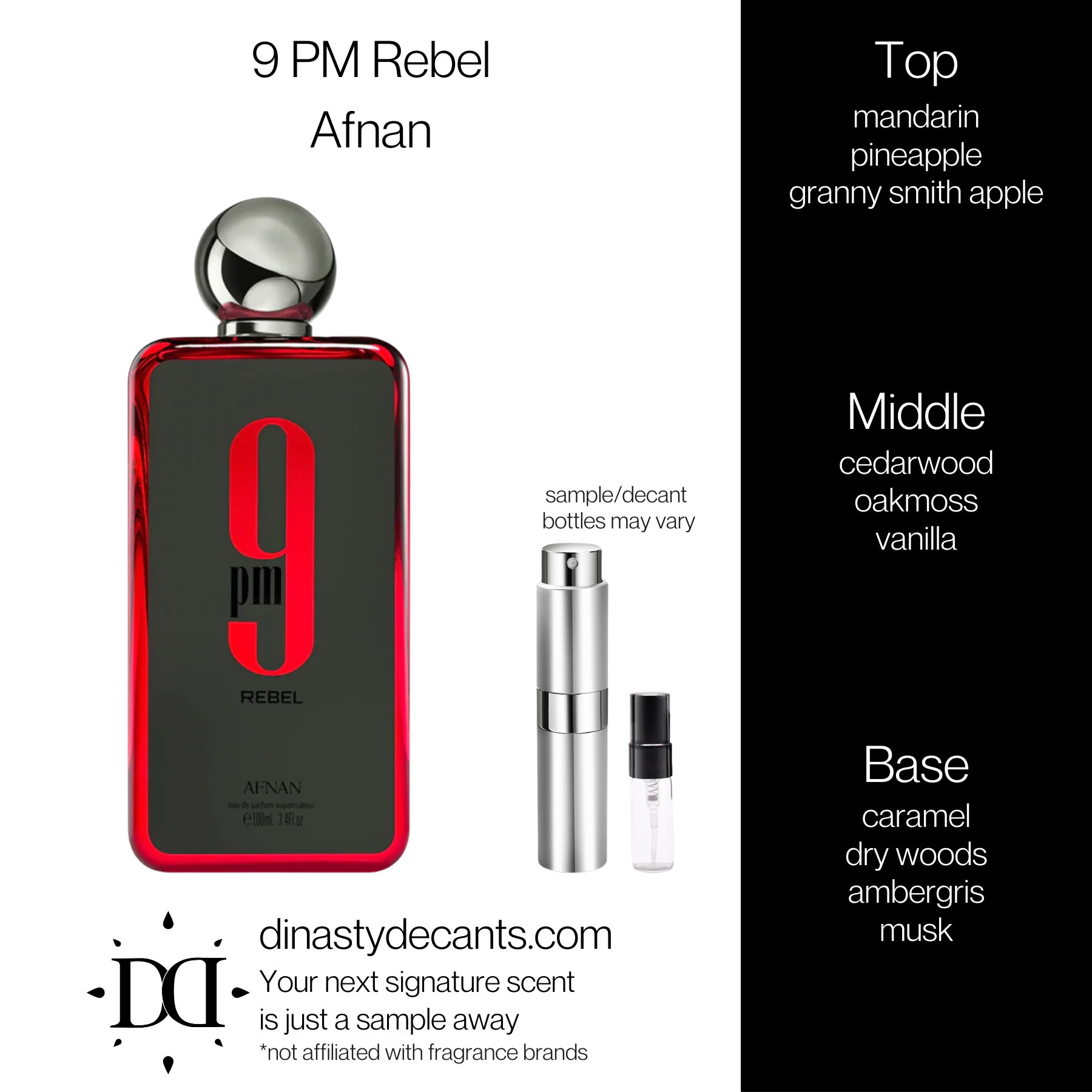 9PM Rebel by Afnan is a lively and sophisticated fruity-woody fragrance perfect for those who dare to stand out.