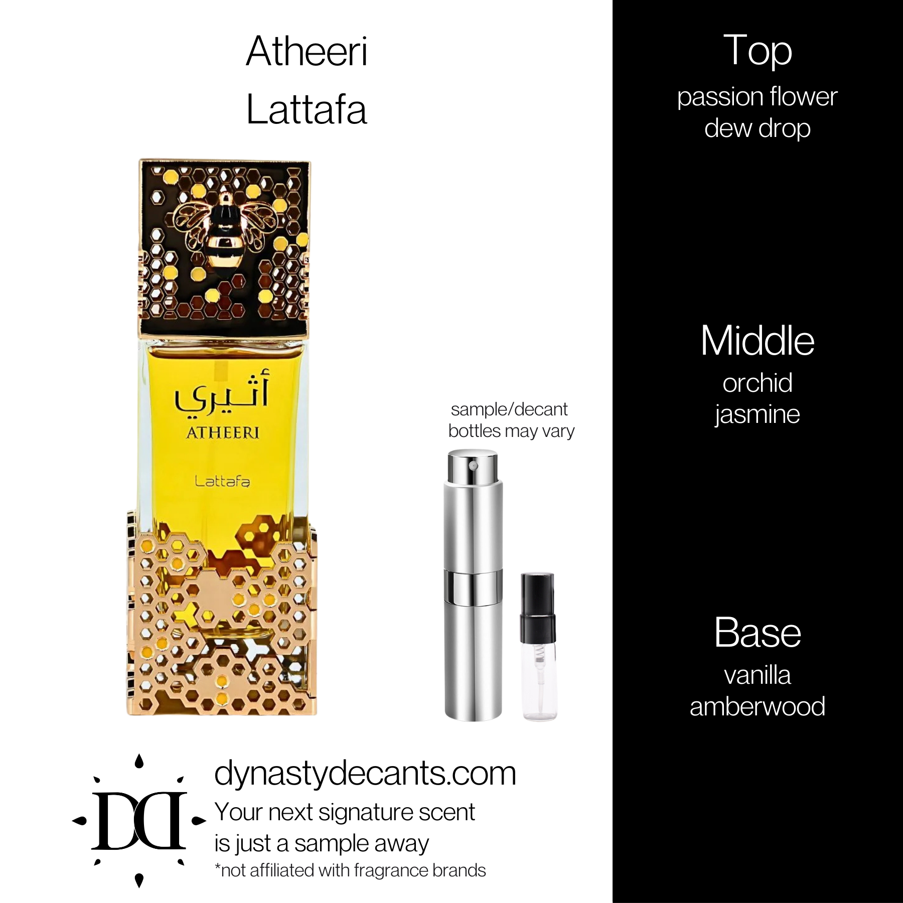 Atheeri by Lattafa is a creamy, exotic floral scent that captures the essence of a dew-kissed garden at dawn.