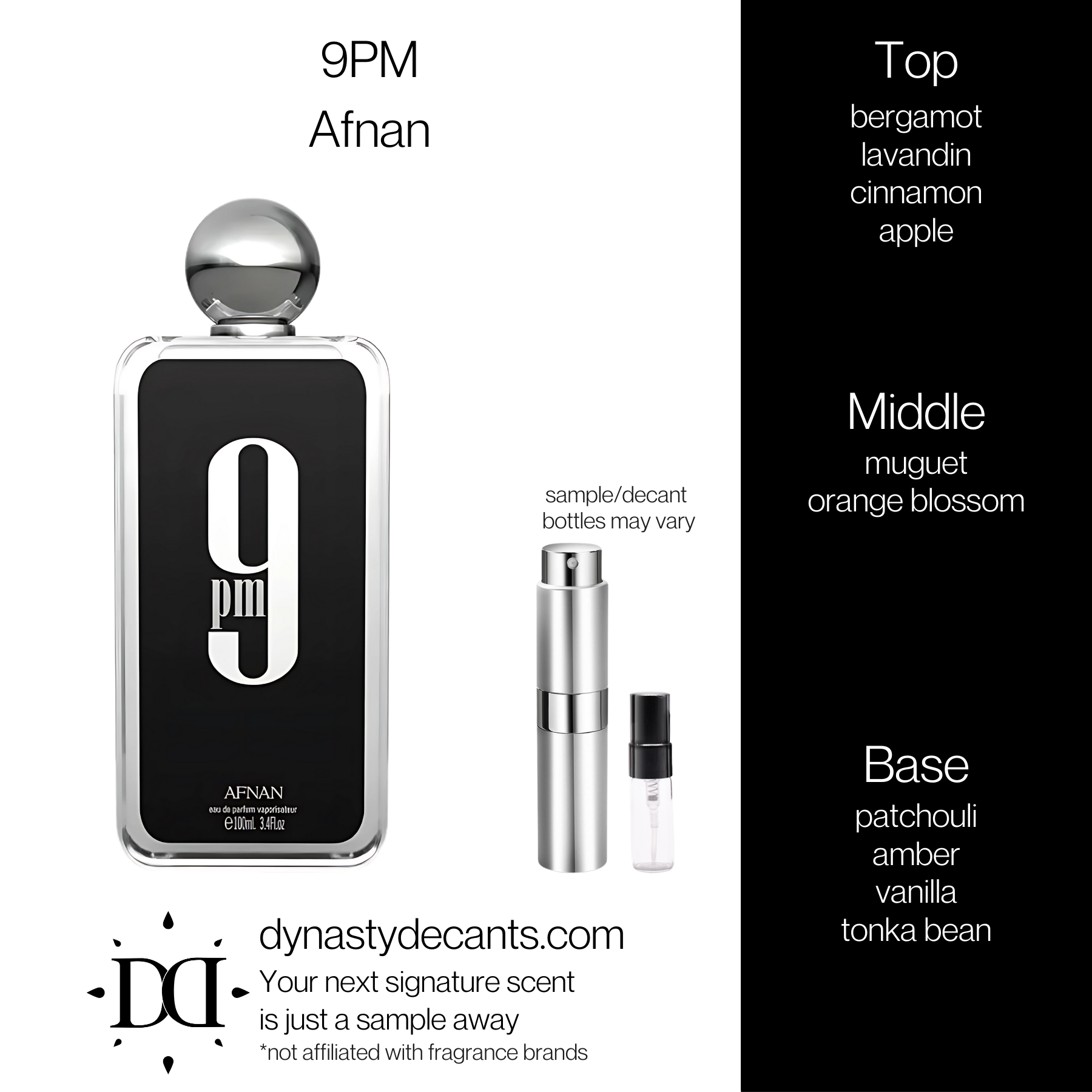 9PM by Afnan is a deeply comforting and sophisticated sweet-spicy scent, perfect for evening wear.